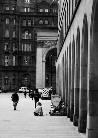 Everyday Outsiders was a project completed by Katie O'Neill in 2018. The projects aim was to get to know some of the numerous people living on the streets in Manchester. A way to try and raise awareness of the situations that were happening in the local area. The portraits of the project were to try and show that despite being on the streets the men and woman are just like everyone else. Where as the more documentary shots taken from a far allow a more in-depth look into the subject.